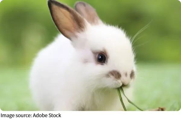 Слишком длинные зубы вызывают боль, слюнотечение и проблемы с питанием. Узнайте, чем кролика кормят: большое количество сена помогает естественно стачивать зубы.