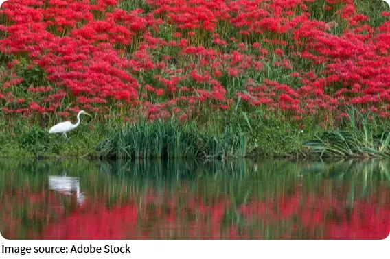 Одно из самых удивительных свойств этого цветка — как по-разному его называют в разных странах. В Японии он известен как хиганбана — это слово восходит к санскритскому манжусака, а среди других прозвищ встречается и «Призрачный цветок», подчеркивающий его загадочность. В Корее его зовут «Санси-хва», что переводится как «цветы и листья никогда не встречаются». Какое поэтичное определение, правда? Оно будто отражает двойственную натуру растения — красивое и в то же время ускользающее.