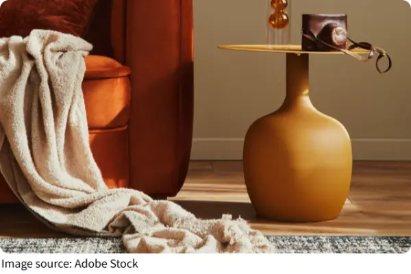 Самый простой способ добавить текстуру — смешивать материалы. Деревянный столик рядом с металлической лампой уже создаёт контраст. Добавьте плетёную корзину — и пространство становится более живым.