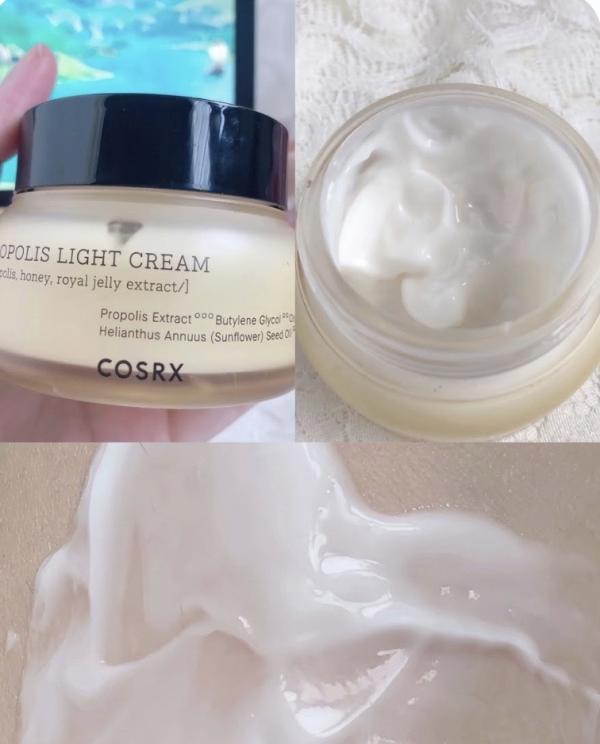 Здесь совсем другое настроение. Прополис известен своими питательными и защитными свойствами, и этот крем делает на этом акцент. В составе — высокая концентрация прополиса, а также мёд и маточное молочко, которые помогают улучшить внешний вид кожи и придать ей сияние. Текстура остаётся лёгкой, но ощущается более «обволакивающей». Не тяжёлой, а именно уютной — как будто кожа получает не просто увлажнение, а полноценный уход.
